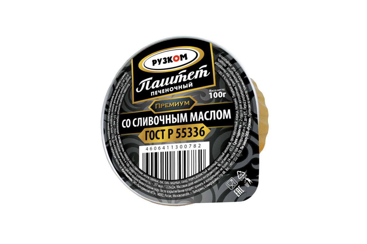Паштет ГОСТ с маслом ПРЕМИУМ 100г (20) РУЗКОМ ламистер